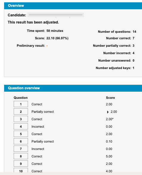 First, we advise you to get a global understanding of how you performed on the exam by checking the “question overview.”