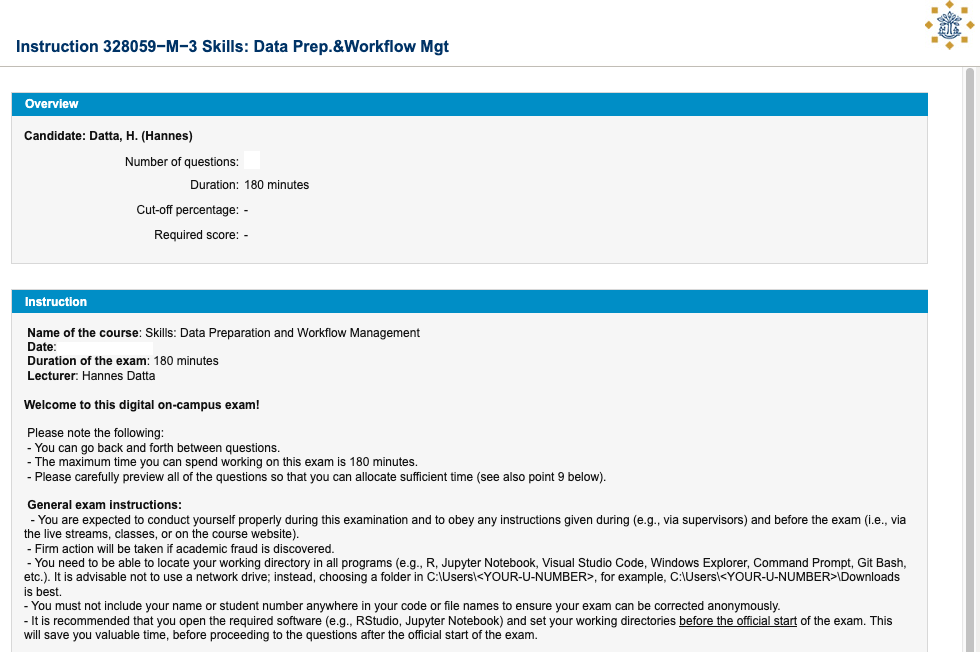 - Save time on exam day: before the exam officially starts, open the required software (e.g., RStudio, Jupyter Notebook) and set working directories so you can begin immediately.